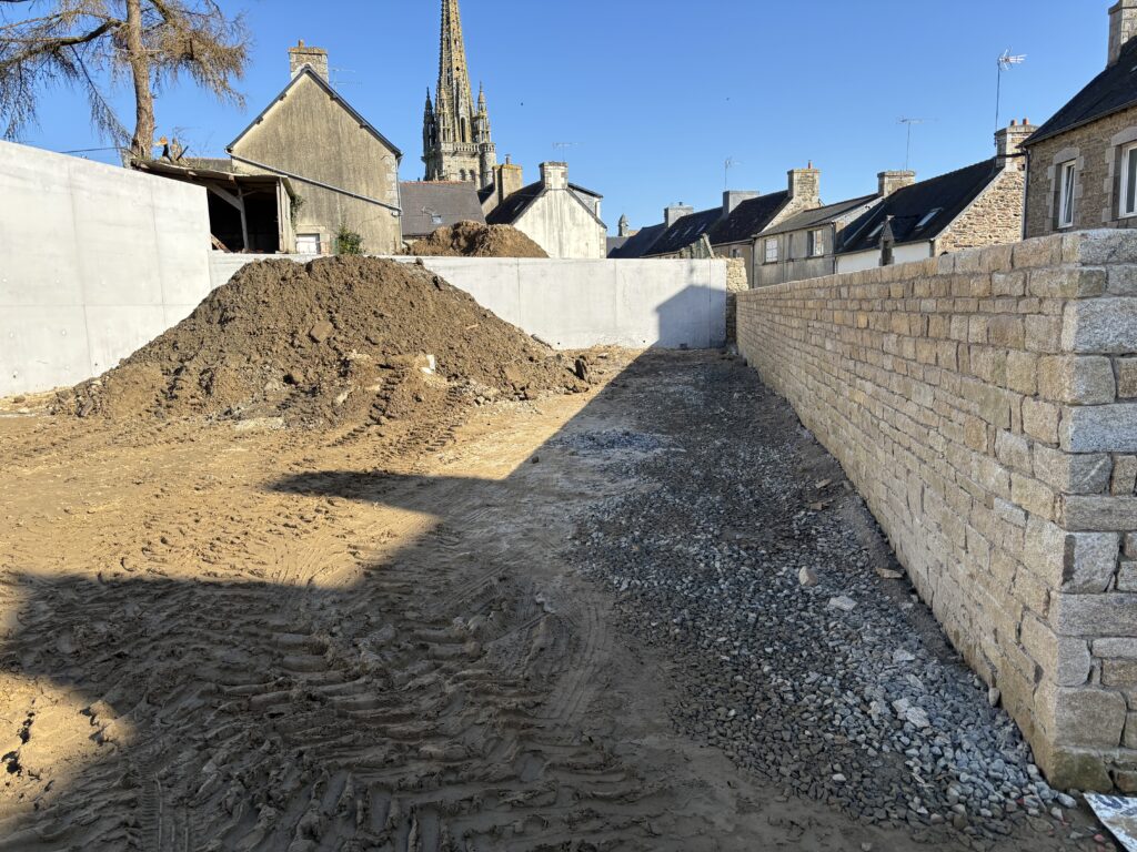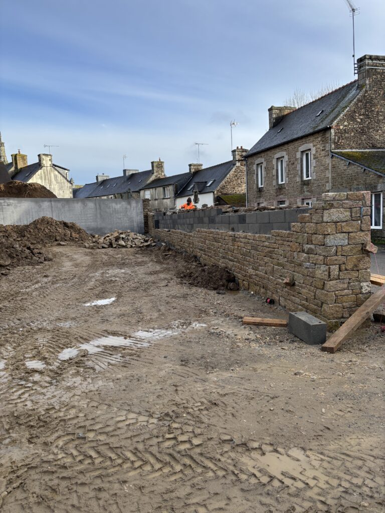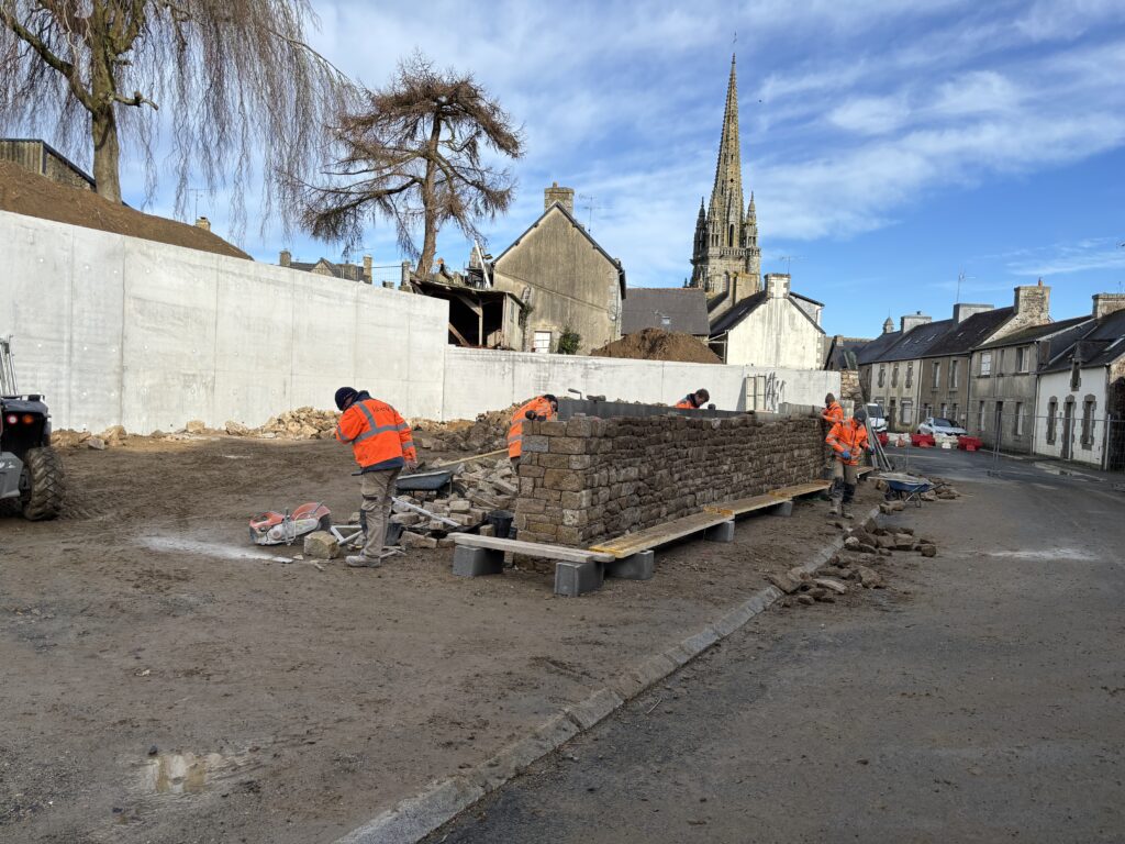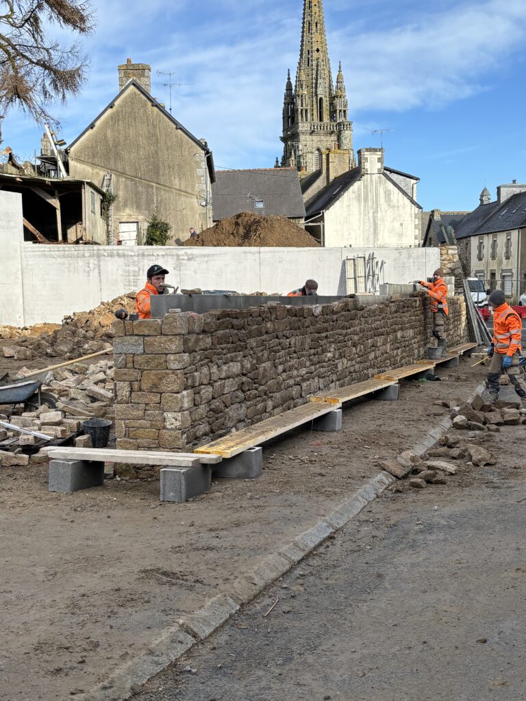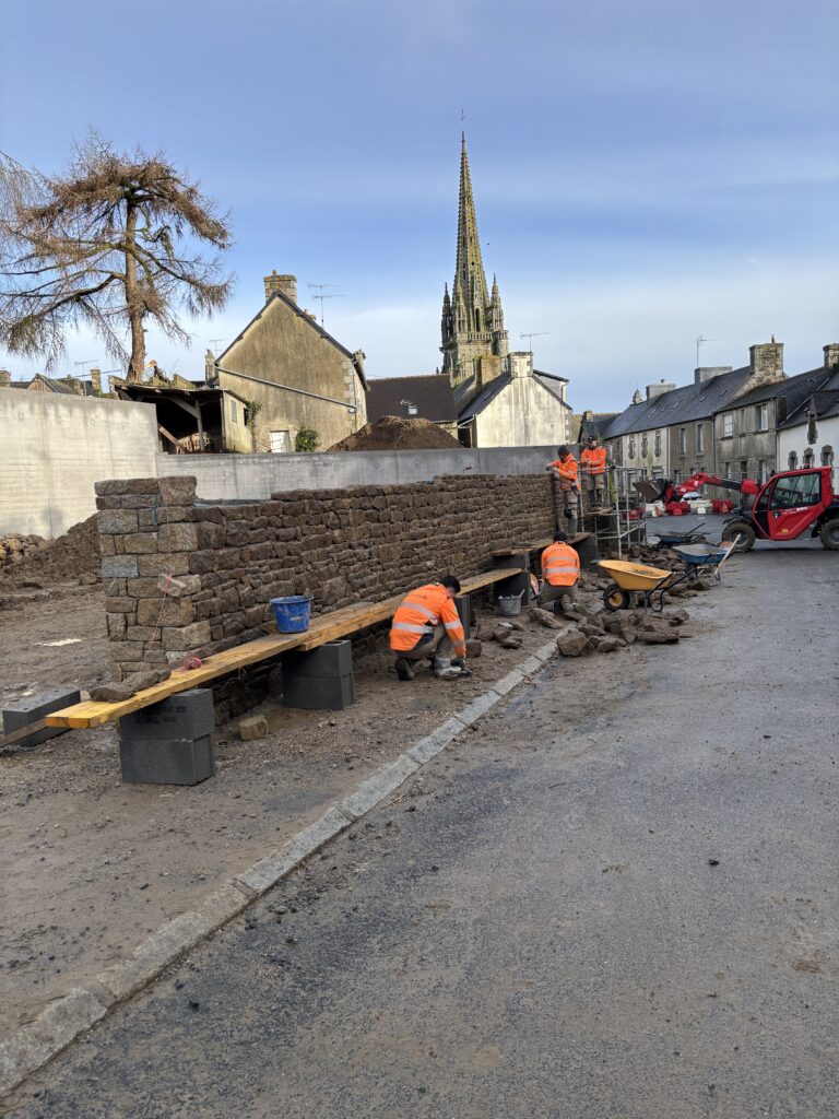 L’entreprise LE GUERN se charge du mur de soutènement du parking :